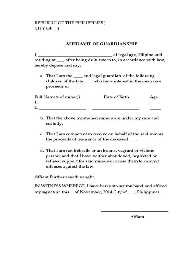 It is typically used when someone needs to assume legal responsibility for a minor child or incapacitated adult. Then you will have to present an affidavit of guardianship. Need to gain custody of somebody? I, ______________________________________ hereby declare to take on the full responsibility, guardianship and support for. Whether you're affirming your legal guardianship status, providing evidence for custody arrangements,.