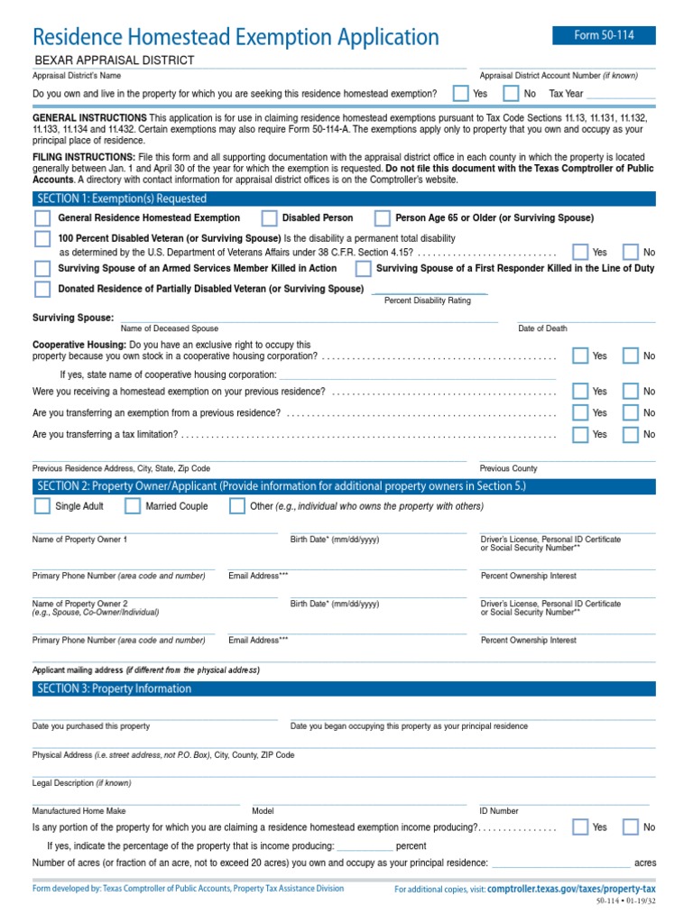 Residence Homestead Exemption Application Tax Exemption Taxation In
