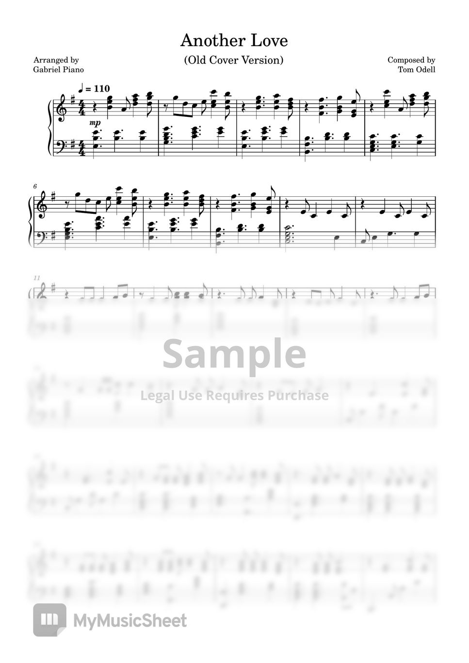 Tom Odell Another Love (Piano Sheet) Sheet Music by Pianella Piano