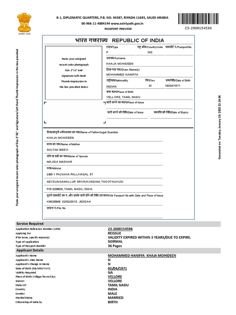 APPLICATION FORM FOR INDIAN PASSPORT ARN_ 232000154596 PDF