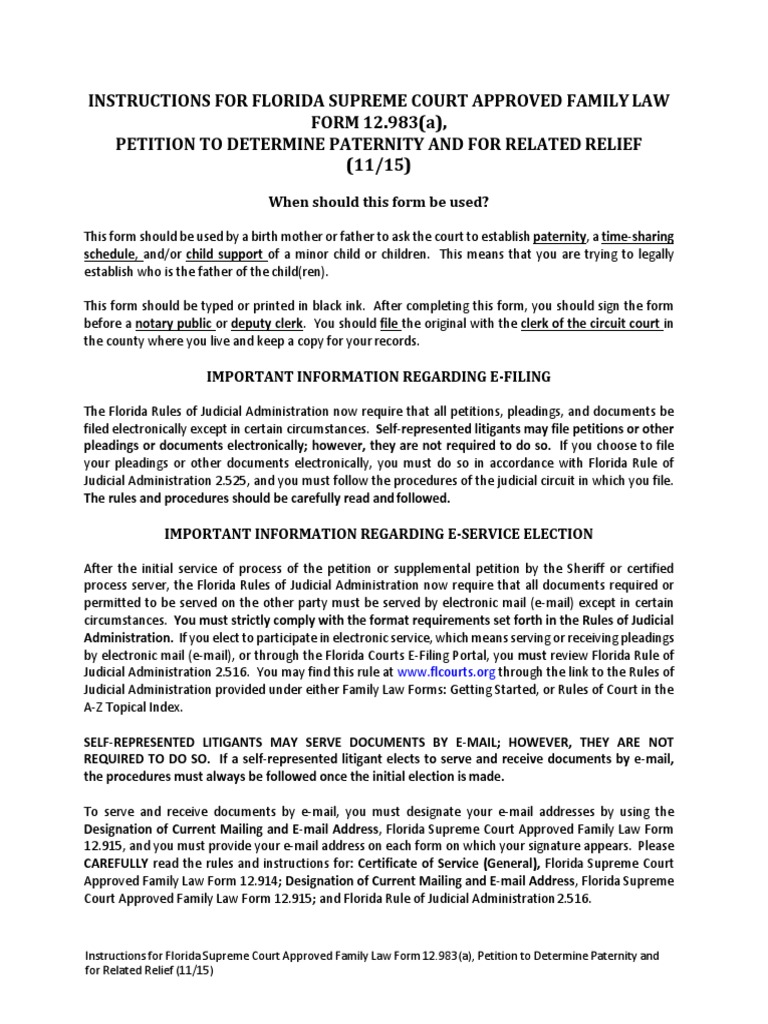 Instructions For Florida Supreme Court Approved Family Law FORM 12.983
