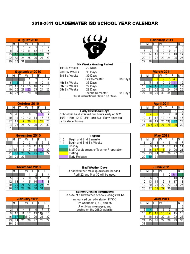 2010 11 GISD Calender PDF Evaluation Methods Student Assessment