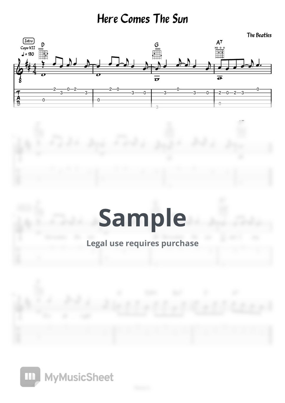 The Beatles Here Comes The Sun (Guitar) Sheet Music by Meowscore