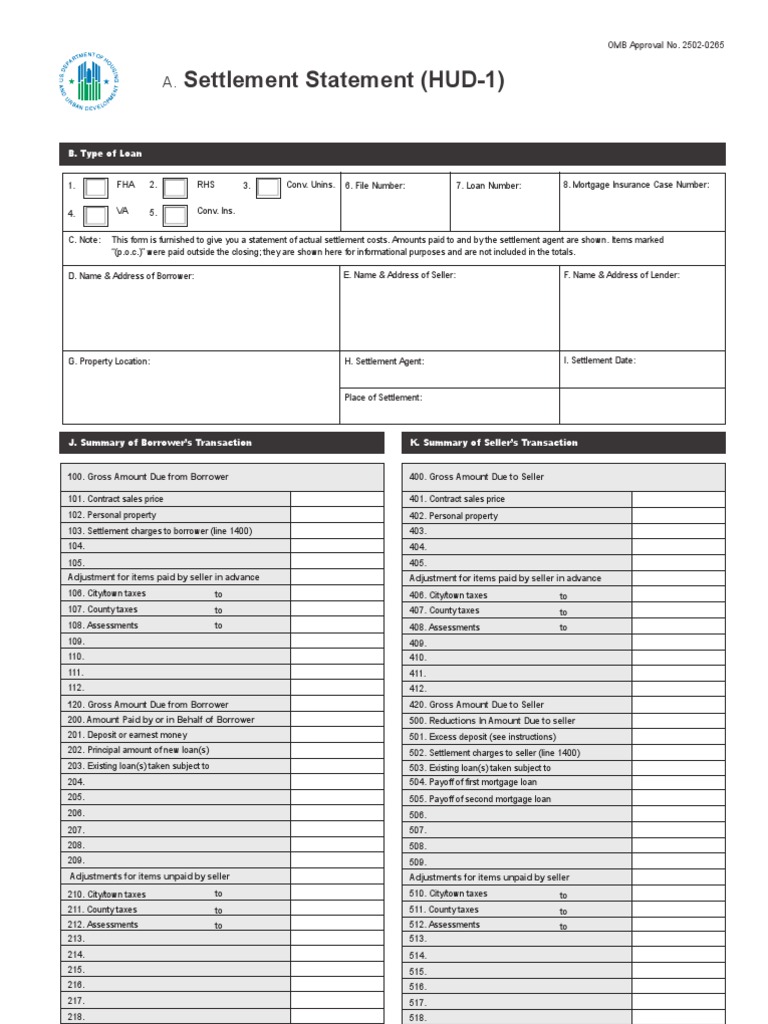 www.hud.govsitesdocumentsA. Settlement Statement (HUD1) United