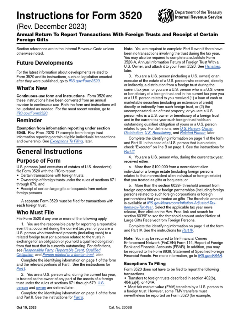 Instructions For Form 3520 (Rev. December 2023) PDF Tax In