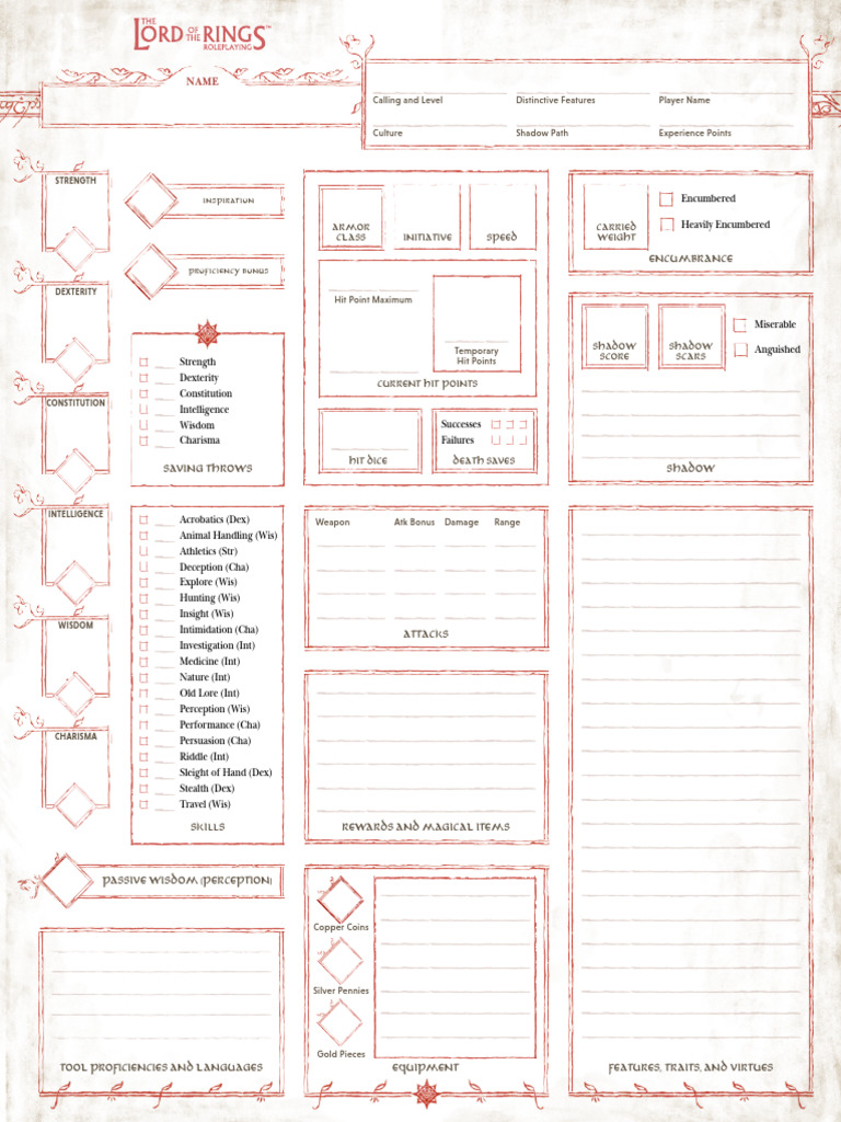 The Lord of The Rings Roleplaying Character Sheet PDF