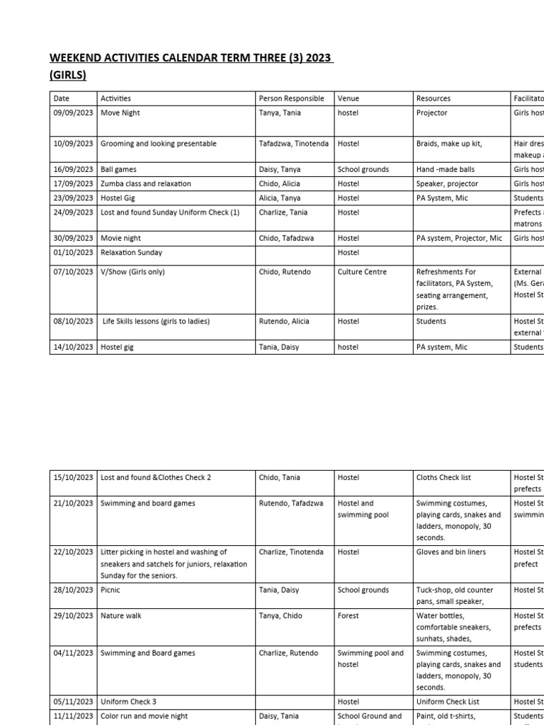 Week Activities Calendar Girls (Edited by Vibe Tribe) PDF