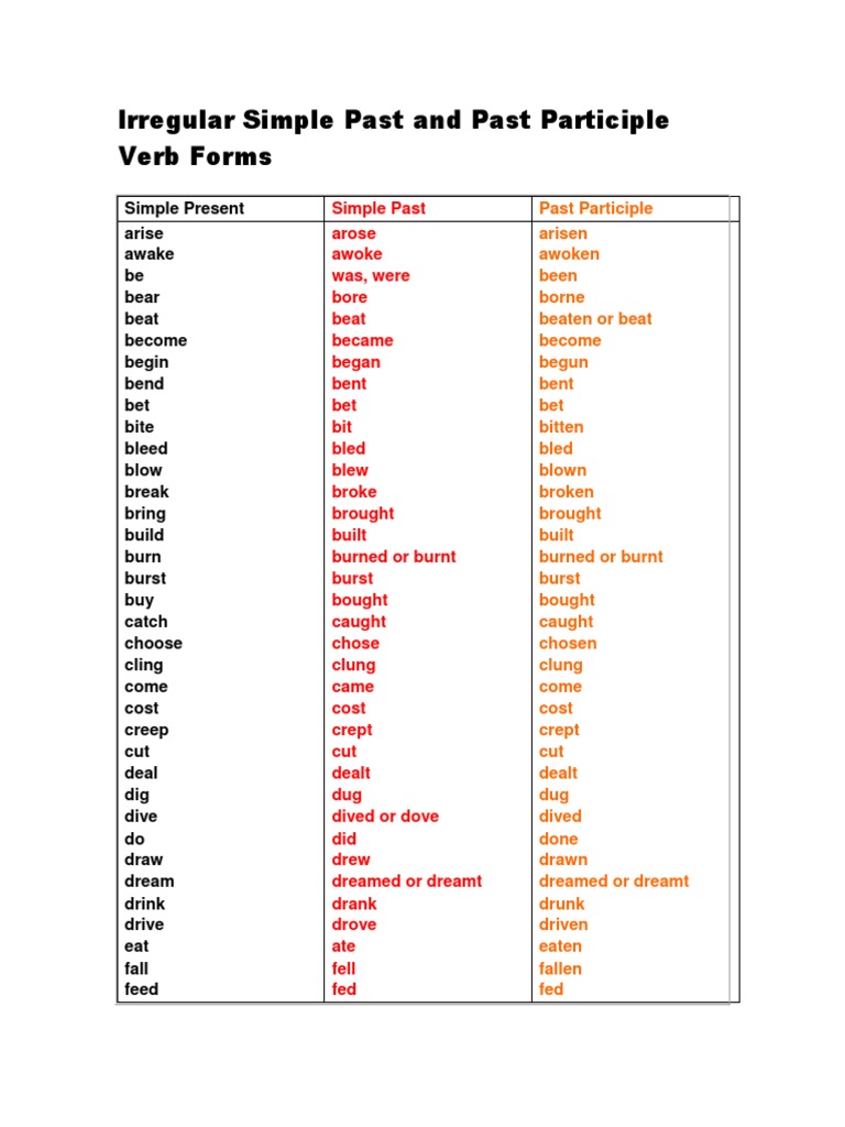 Irregular Simple Past and Past Participle Verb Forms (Easy) Grammar