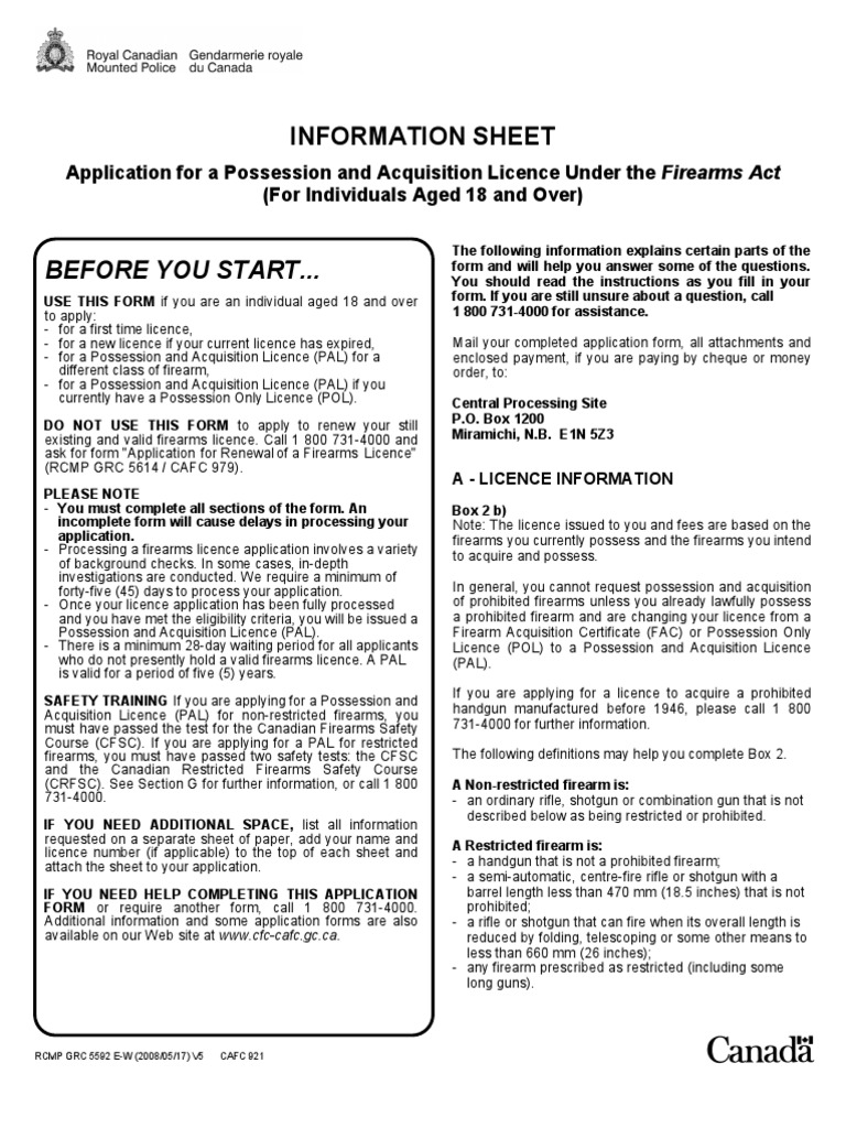 Application for a Firearms Possession and Acquisition Licence A Guide