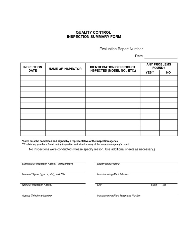 Fillable Online Quality Control Inspection Form Template Fax Email