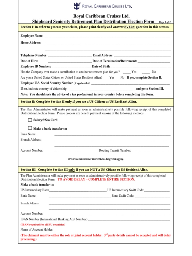 Royal Caribbean Cruises Ltd. Shipboard Seniority Retirement Plan