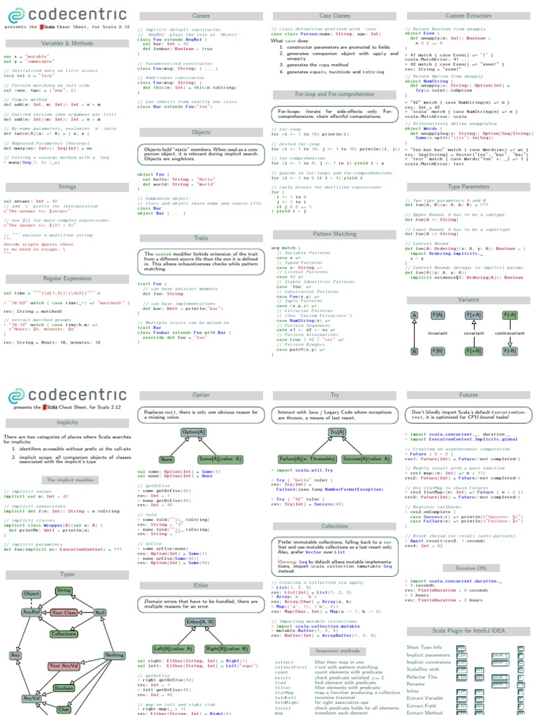 Scala Cheat Sheet - There is no huge corporate sponsor driving scala development like there is in other languages. Using sdkman!, you can easily install specific versions of scala. Scala has a special type of class called a “case” class. Download and use scala with intellij and then build a project, then test it. By default, instances of case classes are immutable, and they are compared by value. Scala is a community effort; Scalable scala is well suited to building fast, concurrent, and distributed systems with its jvm, javascript and native runtimes.