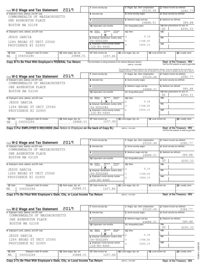 W2 Wage and Tax Statement Statutory Employee Retirement Plan Third